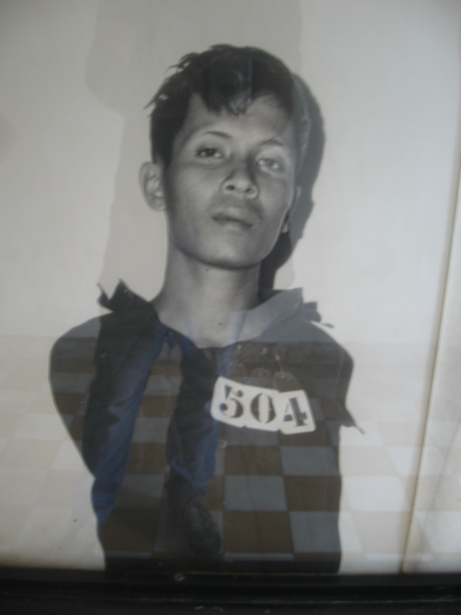I am at Tuol Sleng (Genocide) Museum in Phnom Penh. Pol Pot’s Khmer Rouge converted the school into a prison where they tortured and killed political enemies and their families. The Khmer Rouge documented their crimes with mug shots and photographs of emaciated victims. The photographs now line the rooms of the school-cum-prison-cum-museum. The city has done an incredible job with this minimalistic approach. A brochure and a few signs are adequate for background, and guides are available if desired; however, the way in which I have silently roamed the “classrooms” is, I believe, the most profound. The eyes of the victims captivated me. Especially the eyes of the women. They spoke more. Some simply asked “Why?”; some had given up hope; some were determined to stay strong; some said “I am going to kill every last one of you for what you’ve done. I’m going to turn the chisels and hammers you used to kill my husband and sons upon you.” Some eyes were wild—unreadable except for the one concept: “vengeance.”