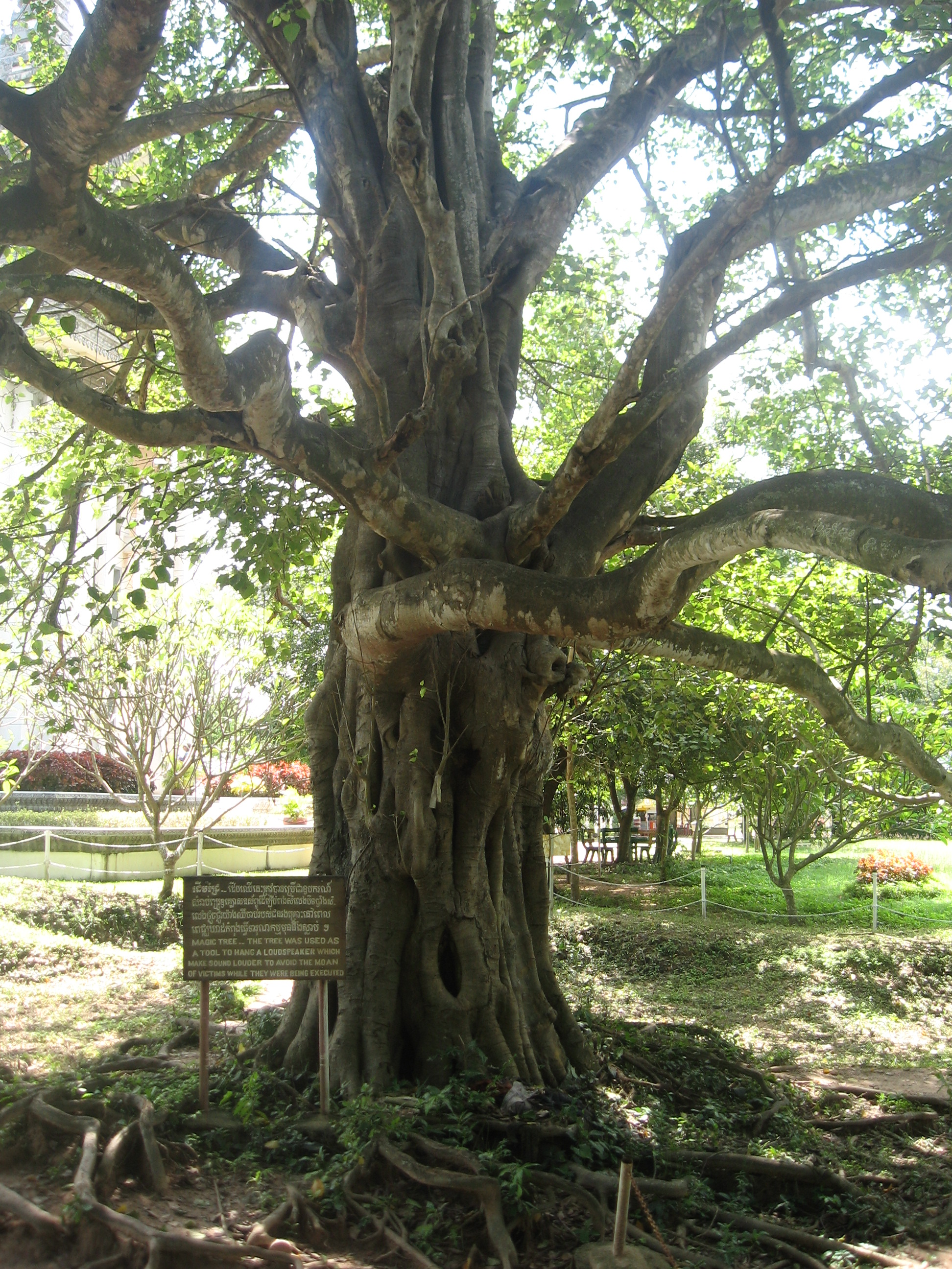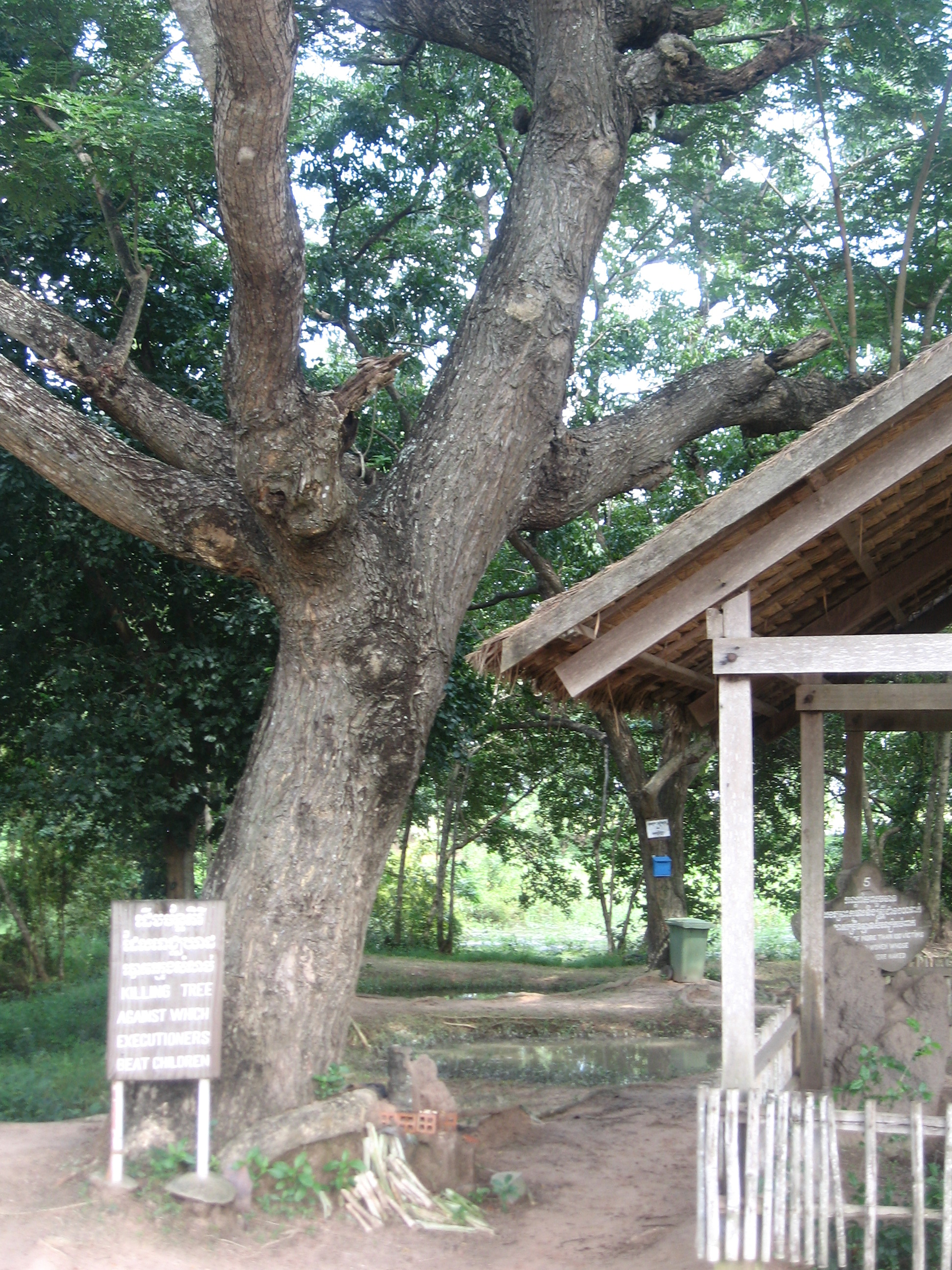 Another named tree at the Killing Fields has a sign which read: “Magic Tree…the tree was used as a tool to hang a loudspeaker which make sound louder to avoid the moan of victims while they were being executed [sic]”.